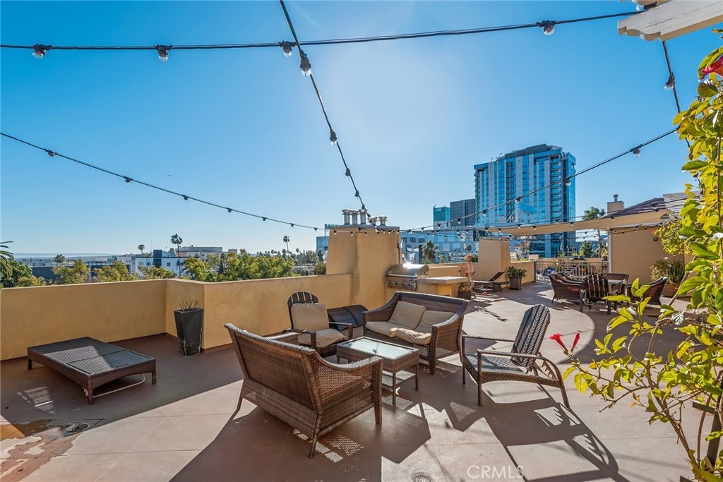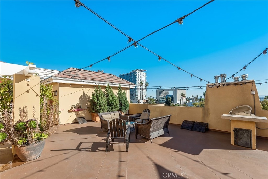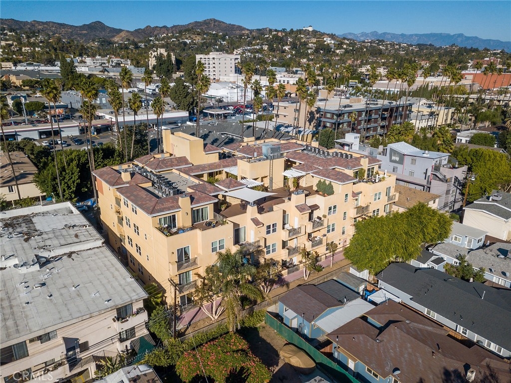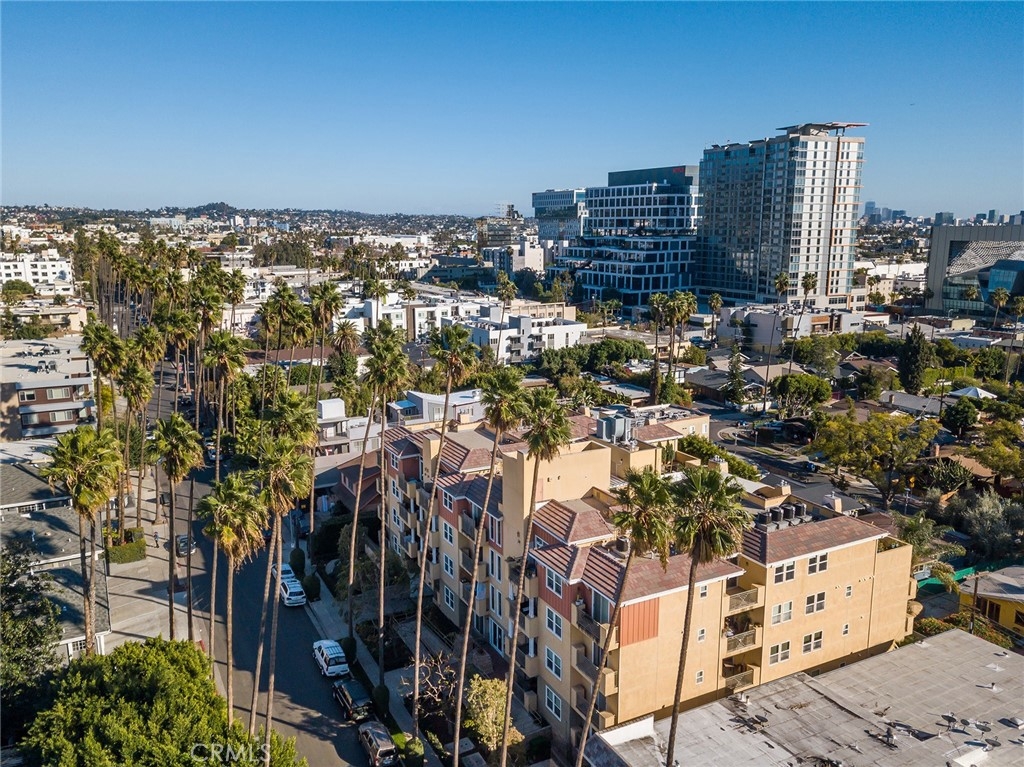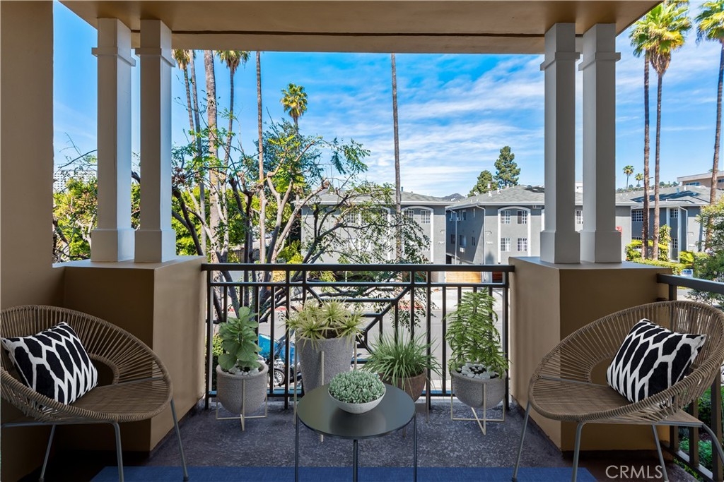 This 2nd floor unit located in the heart of Hollywood features 2 bedrooms, 2.5 baths, gas fireplace in LR, large private balcony off the LR with separate balcony off the master bedroom. Newer construction (2007). This beautifully appointed condo features hardwood floors throughout, stainless steel appliances, marble and quartz finishes, marble-tiled powder room, full in-unit front-load washer & dryer, and views from the unit of the famed Hollywood sign, Capital Records, and nostalgic Hollywood cityscapes. The extra-high ceilings give a more spacious feeling to the unit. Airy feel w/tons of natural light. Master BR is generously sized w/large dual closets with custom built-in shelving and drawers. Walk-in marble rain shower and separate marble-surrounded tub in master bath. This unit has only one shared wall. A ton of storage space/closets in the unit. Extra designated storage room in building. 2 designated side-by-side controlled entry garage parking spots, a rare amenity in LA. HOA dues include water, trash, and Earthquake insurance. Ample guest parking. Enjoy expansive panoramic city views from the community roof-top deck. Grill and relax using the built-in gas grill or enjoy the romantic setting sun each evening. Building features an enclosed dog run, controlled keypad entry, elevator, and is handicap accessible. Netflix, Viacom, Hollywood/Vine Metro Station, Trader Joe’s, Pantages, Walk of Fame, Emerson College, are just up the street. This condo is a must-see gem.