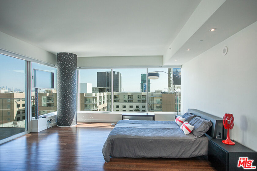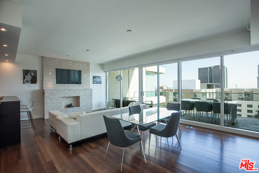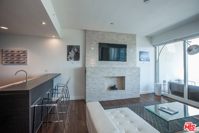 W Hollywood: Large one-bedroom south-facing penthouse. Huge views from terrace and master bedroom spanning from DTLA skyline to Century City and nighty sunsets. oversized, private 216sf terrace, glass-enclosed master bedroom. feature wall with fish tank display, large stone fireplace, upgraded master bath, laundry closet, open floor plan. Enjoy an oasis in the heart of Hollywood with all the amenities offered by this full service building including 24 hour concierge, valet, security, room service, roof top pool and event deck, dog park, fitness center, outdoor grills and private screening room. The only new-cosntruciton, full-service condo building in the heart of Hollywood