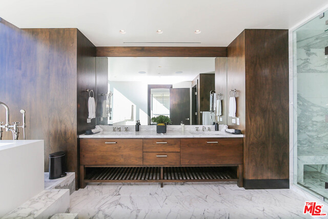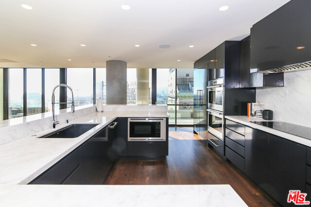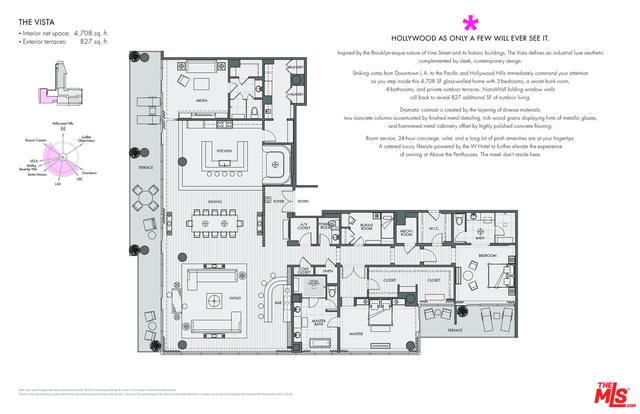 Only a few remain of these striking, top floor "Above the Penthouse" homes at The Residences at W Hollywood. This is a southwest corner penthouse labeled "The Vista" and rightly so, it has more than 4000 SF of interior with glass walls to take in the views from Downtown LA to Century City to the Hollywood Hills. Additionally, it has over 800 more footage of terrace. With a Brooklyn-esque meets roaring 20s vibe, this brand new home was inspired by its historic views of the Taft & Broadway buildings & features a bronze artisan bar with a plethora of more sophisticated details throughout. This entertainer's space with its oversized living area & automated, drop down 133" TV projector exudes luxury with design by the superb Smith-Firestone Associates. Other impressive features include a Crestron smart home system, NanaWall windows & steam showers. Experience the service, convenience & security of living at one of the most exclusive properties in Los Angeles. 4 parking. Includes Furnishings