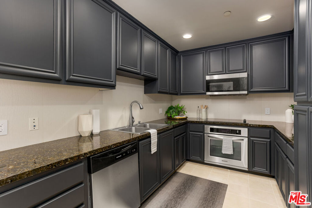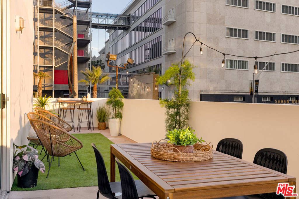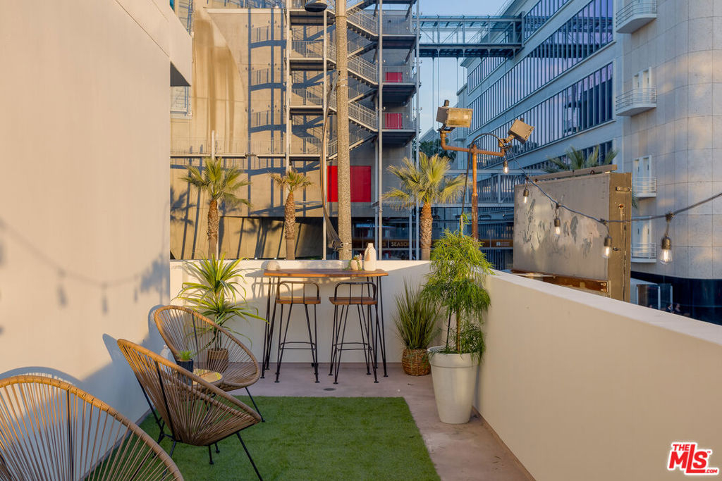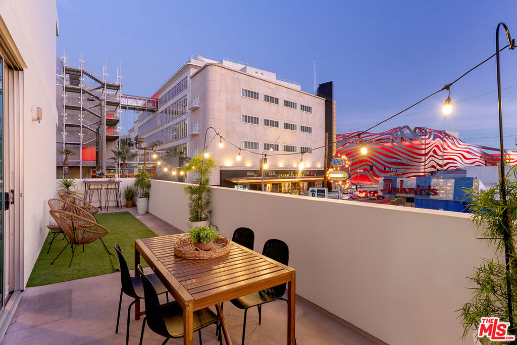 Gorgeous contemporary Miracle Mile condo located on one of LA's most iconic corners. Fairfax and Wilshire, across from LA's "Museum Row" which includes the LACMA, the Academy Museum, Petersen Automotive Museum, "The David Geffen Galleries", and the new Fairfax and Wilshire metro stop. The Grove and 3rd Street dining and shopping are only a few blocks away. The building was recently renovated, and the unit itself flows wonderfully and offers a spacious living and dining area. It is the only unit in the building with an enormous wrap-around balcony, with entrances from every room. Enjoy your morning coffee or a California sunset from your private outdoor living lounge. This 2-bedroom, 2-bath unit has been thoughtfully updated with new LVP floors, upgraded appliances, and fresh designer paint throughout. The primary bedroom offers a generous walk-in closet and an opulent en-suite bathroom with a marble bath/shower. The 2nd bedroom and bath are located on the opposite side of the unit, giving your guests optimal privacy. There is also a stacked washer and dryer in the unit, double-pane windows and doors, and two secure tandem parking spaces. The building has a rooftop deck with BBQ and 365-degree views of the city. Other amenities include a Butterfly MX access system, an EV charging station, and an Amazon locker for packages. Don't miss this one, will NOT last!