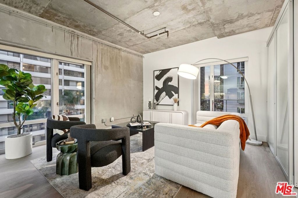 Step into urban loft luxury at the heart of Downtown Los Angeles' vibrant South Park district. Unit 530 at the acclaimed Market Lofts offers an expansive 1,310 sq ft floorplan with 2 bedrooms, 2 full bathrooms, and two assigned parking spaces a rare find in DTLA. Inside, you'll be greeted by soaring ceilings ( 9'- 6"), industrial style windows flooding the space with light, and sleek modern finishes throughout. The open concept living and dining area flows seamlessly into a designer kitchen which has recently been renovated featuring quartz countertops, extensive cabinetry, and stainless appliances. Both spacious bedrooms offer comfort and style, and the in-unit laundry adds everyday convenience. Flooring has recently been renovated with luxury vinyl plank. Beyond your home, the building elevates lifestyle with resort-level amenities: a pool and spa with landscaped deck, a full fitness center, a media/screening room, and 24-hour front desk security. Even better a Ralph's Fresh Fare supermarket and specialty shops are located on the ground floor, making errands effortless. Location is everything: walk to concerts, events or the 7th St/Metro station, explore LA Live, Crypto.com Arena, and dozens of restaurants and nightlife venues right outside your door. Whether you're entertaining guests or simply relaxing at home, Unit 530 offers the perfect blend of downtown energy and sophisticated comfort.