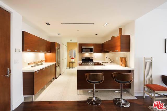 Available now! Modern & timeless, 2 bdrms, 3 baths with nearly 1300sf located in the heart of Hollywood seconds away from shops, theaters, studios, restaurants & night life. Entrance boasts a beautiful open kitchen with Terrazzo tile floors, floating cabinets, CaesarStone countertops, new stainless-steel appliances & breakfast bar that open to the dining room with dark rich bamboo wood floors & accented with a sexy designer chandelier. Walk further into your impressive living room with eco-intelligent electric fireplace including fleetwood glass doors leading onto your balcony overlooking the heated pool & spa with BBQ. Space also includes tons of closets with spacious laundry room in the unit, powder room & two master bedrms with new carpet. 24hr concierge, security on-site and 6 guest parking spots underground to meet your every need. Building also includes a billiard room with club house & fully equipped gym. Also available fully furnished at $4,250/m.