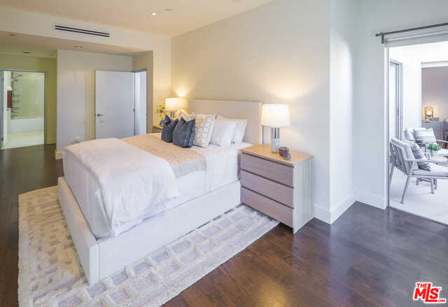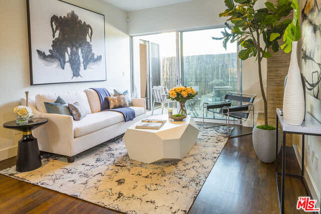 Erected from the modernist sensibilities of award-winning architect, Steven Kanner, FAIA, "The Hollywood" exudes clean lines with warm hues around a central courtyard and pool. The U-shaped condominium is punctuated by individual balconies conducive to indoor-outdoor lifestyle. Residents and guests are greeted in the lobby by a concierge, additional amenities include billiards room, gym, and abundant guest parking. Unit 306 is uniquely appointed with luxurious hardwood floors throughout the unit. A sumptuous kitchen features Pedini cabinetry, terrazzo floors, Jenn-Air appliances and exceptional storage. Living space is light and airy with large sliding doors that open onto the patio. Oversized bedrooms allow space for seating areas to enjoy a book or early morning coffee, each bedroom has direct access to the patio. Thoughtfully designed, the unit also has a spacious laundry closet and powder room.