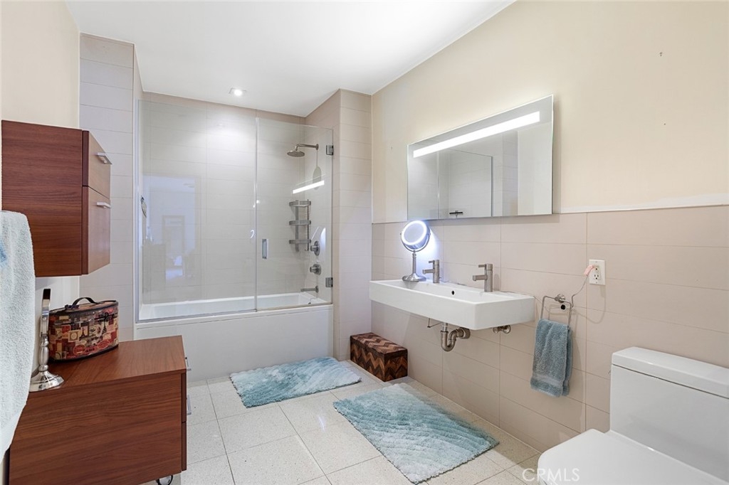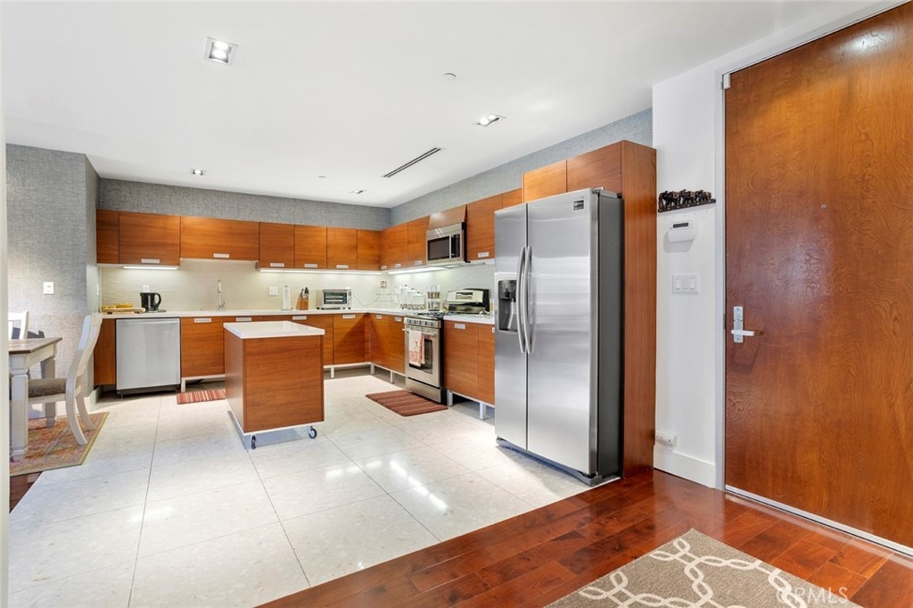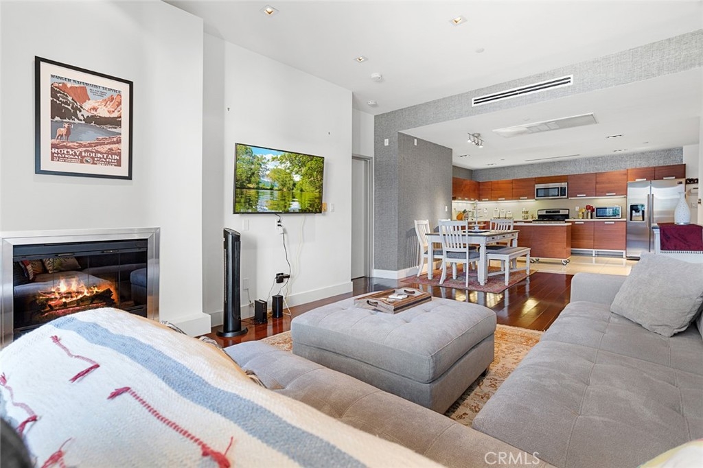 Located within steps of the famous Walk of Fame and Chinese Theater in the heart of Hollywood this award-winning, luxury complex, is just steps away from restaurants, shopping, and entertainment. A Hollywood condo single-level, contemporary, and spacious unit has an open floor plan with high style and a touch of glamour. Beautifully appointed 3rd-level unit with 9' ceilings, private balcony, and amenities including 24-hour doorman, pool, gym, TV , billiard lounge, and plenty of guest parking. The open kitchen has a center island, quartz countertops, Pedini cabinets, full-height tile backsplash and stainless appliance suite by Jenn-Air, Ceasar-Stone counters, recessed lighting, in-unit washer/dryer, and fireplace. There's a powder room for guests, a laundry nook, and lots of closet space including a walk-in. Living and dining rooms have wood flooring, recessed lighting, a fireplace, and a sliding glass door to the balcony. "Dual Master" bedrooms have large attached bathrooms outfitted with designer fixtures and tile. The home has central air conditioning, an alarm system, a jacuzzi, an outdoor BBQ range, and two side-by-side parking.