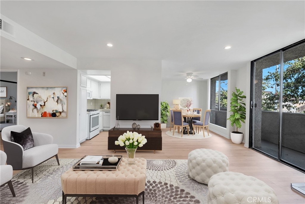 Welcome home to this tastefully redone condo in desired Westchester House complex. Amazing, open floor plan with fireplace on this remodeled two bedroom and two bath with almost 1,000 interior square feet. Newly installed flooring, fresh paint, recessed lights, redone baths, and much more. Large master suite with updated bath with dual vanity. Wrap around balcony perfect for entertaining. Stackable washer and dryer in unit. Gated complex with renovated lobby, association pool and spa. Gated tandem 2 car assigned parking. Great location adjacent to Ladera Heights, SoFi Stadium, Amazon Fresh grocery store, close to the 405, near LAX airport, Fox Hills mall and much more. Perfect starter or investment opportunity with the World Cup and Olympics around the corner.