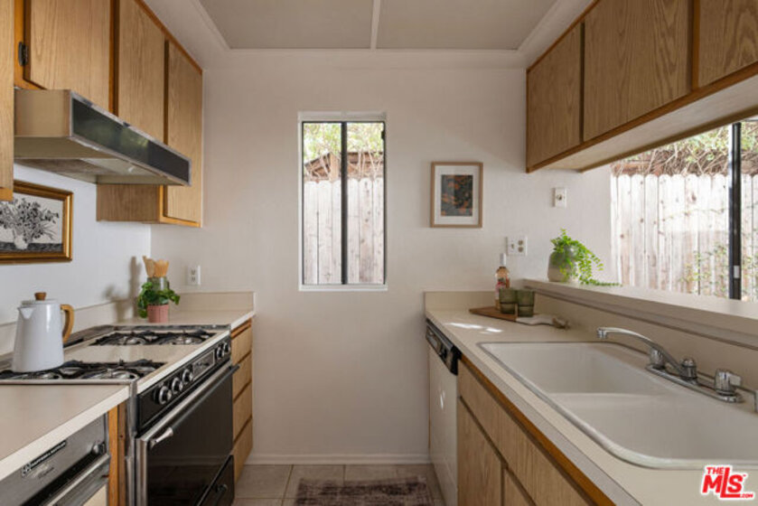 In Silver Lake, this stand-alone condo radiates the sunny charisma of 1980s LA, with a private patio and no shared walls. Natural light fills the spacious living room, anchored by a decorative fireplace. Two generous bedrooms include one with vaulted ceilings; both enjoy ample closet space. The kitchen channels vintage vibes with warm oak-look cabinetry, a breakfast bar, and a handy powder room. The dining area has glass sliders opening to an enclosed patio, a lovely retreat for morning coffee or evening cocktails. Amenities include a private garage with direct access, an additional dedicated parking spot adjacent to the structure, and in-unit laundry. The great location puts youinthe heart of it all,close to everything you love in Silver Lake including Sunset Junction, the Reservoir, and Bellevue Park.
