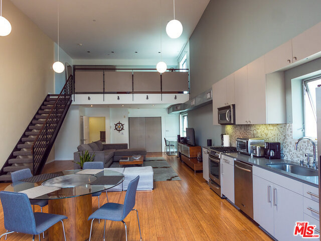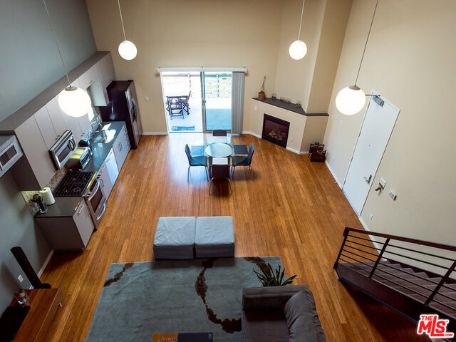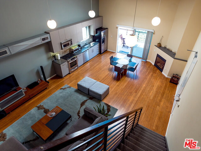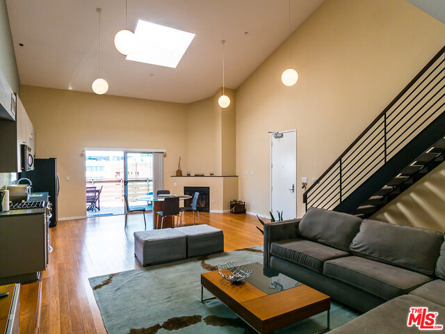 Dramatic NY Style PH Loft in the Heart of Hollywood with 18ft ceilings and great natural light! Corner unit, only 1 shared wall, top floor, no one above you! Beautiful Caesar Stone Kitchen with Stainless Steel appliances. Gorgeous Mosaic Tile Bath, H/W floors, Large Windows, Fireplace, in-unit Laundry & Large Private Terrace with views. Bedroom is the loft overlooking living room. 2 Parking Spaces(not tandem) + 9 guest pkng spaces for the bldg and a community rooftop deck! There is an additional space, open to the living room, that can be used as an office/den. High Walk Score! Just steps to Roosevelt Hotel, HH Center and More. If you like open layouts you will love this! PLEASE SEE PRIVATE REMARKS. Furniture included in the sale of property.