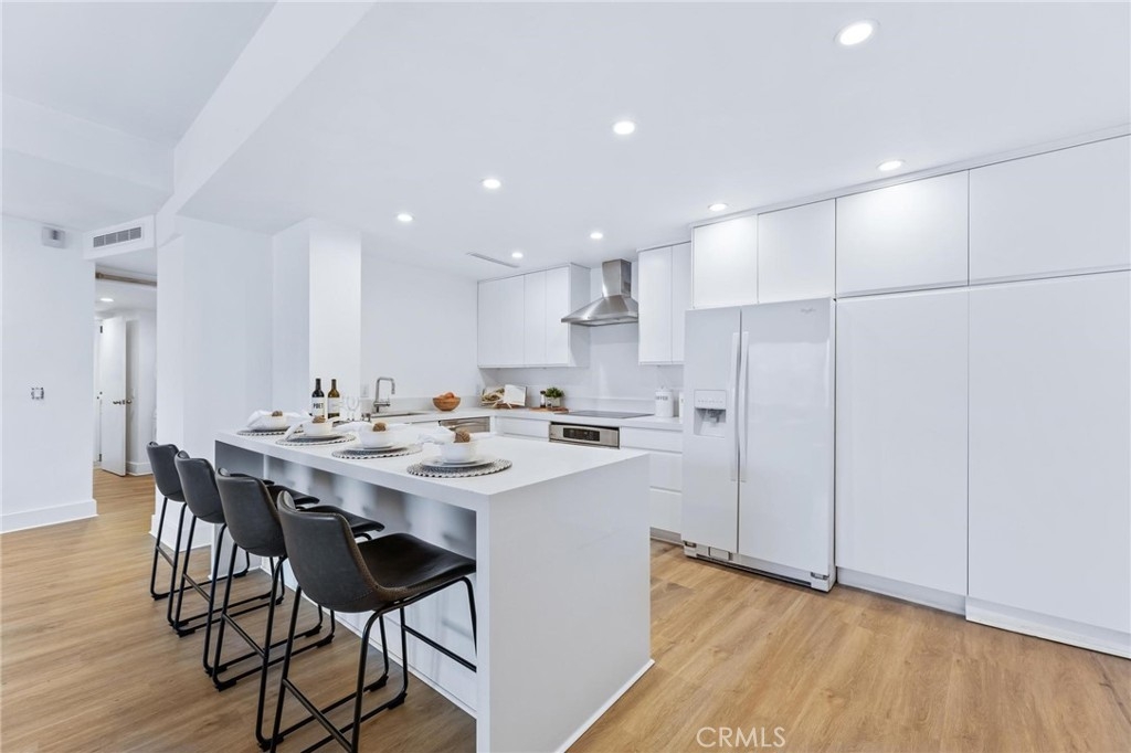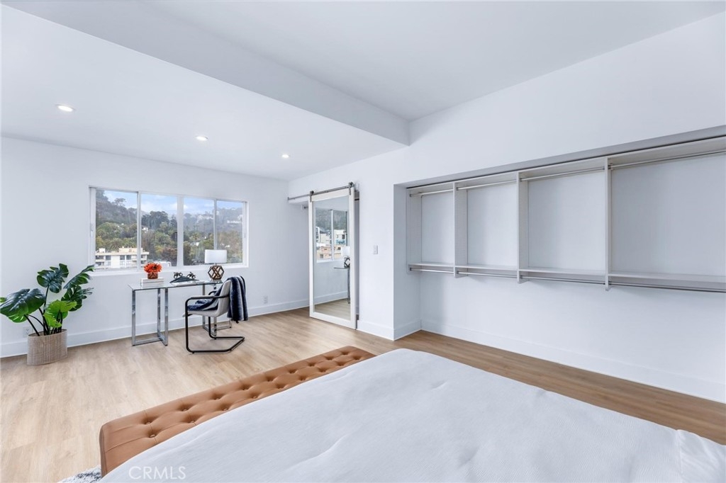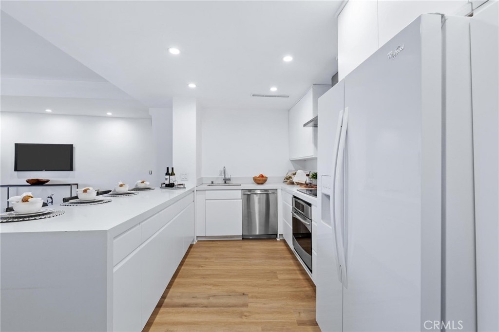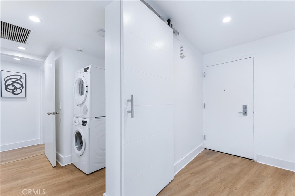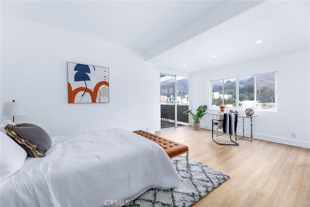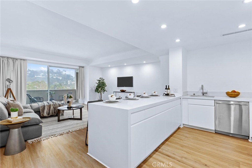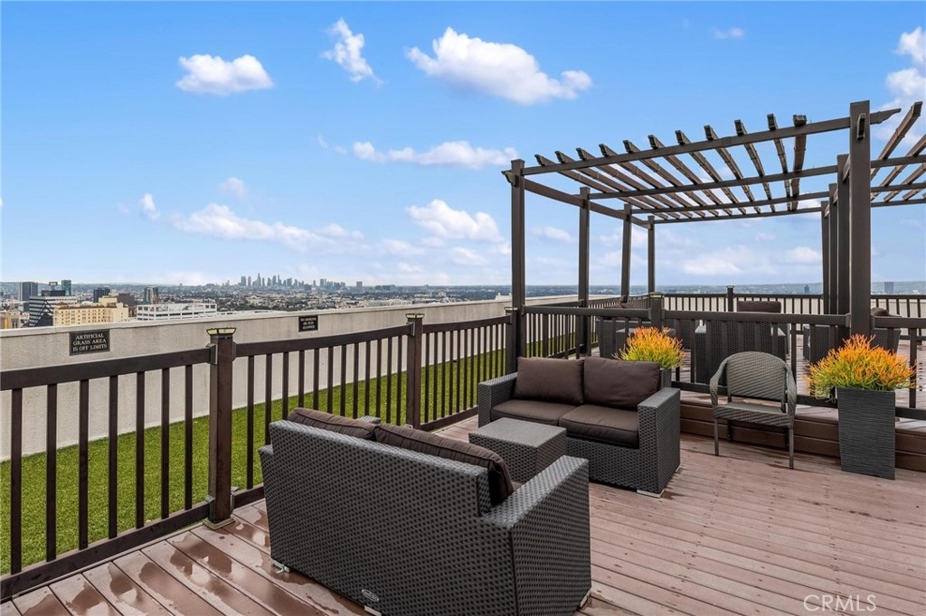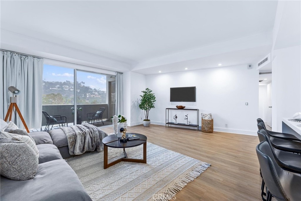 Embrace the vibrant energy of the Hollywood Hills in this stunning 1 bed, 1.5 bath condo. This beautifully designed 1,090 square foot condo offers a seamless blend of comfort and style, with breathtaking views of the Runyon Canyon and the Griffith Observatory from your private balcony. The open-concept living area features abundant natural light with floor to ceiling windows, modern finishes, recessed lighting, and a gourmet kitchen with a spacious island that will inspire your inner chef. Unwind in the oversized primary suite, large enough to accommodate a home office or sitting area. The suite has ample closet space and a private bathroom featuring a double vanity and roomy shower. Additional amenities include a stackable washer & dryer, half-bathroom for guests, new flooring, and high ceilings. There are two parking spots (tandem) with 3 storage containers. There’s even an EV charging station right next to the parking spot! Beyond your front door awaits a wealth of amenities designed to enhance your lifestyle: a sparkling pool, gym, yoga room, clubhouse, rooftop deck, 24-hour security, concierge service, and even valet guest parking. This condo is perfect for those seeking a luxurious and convenient lifestyle with a great proximity to hiking, restaurants and entertainment. Make this condo your next home.