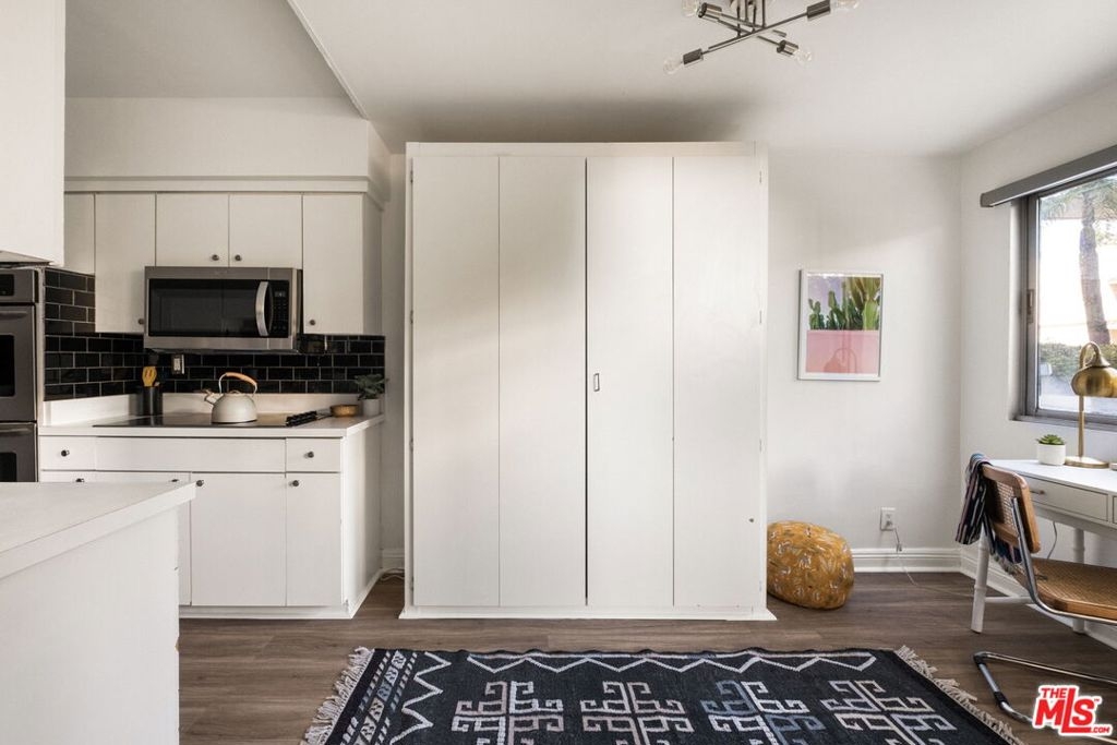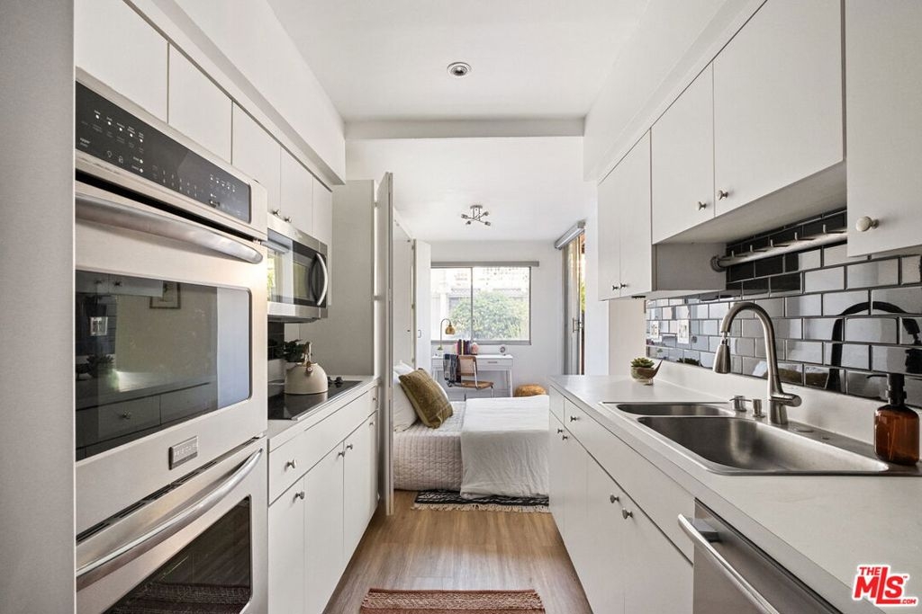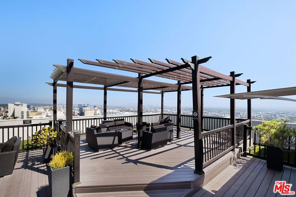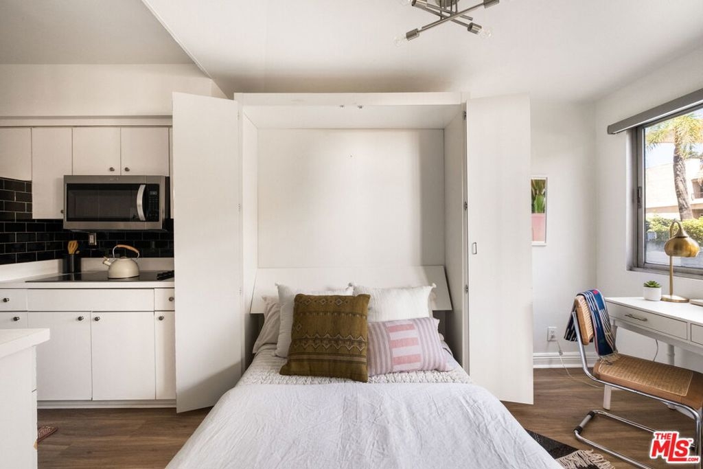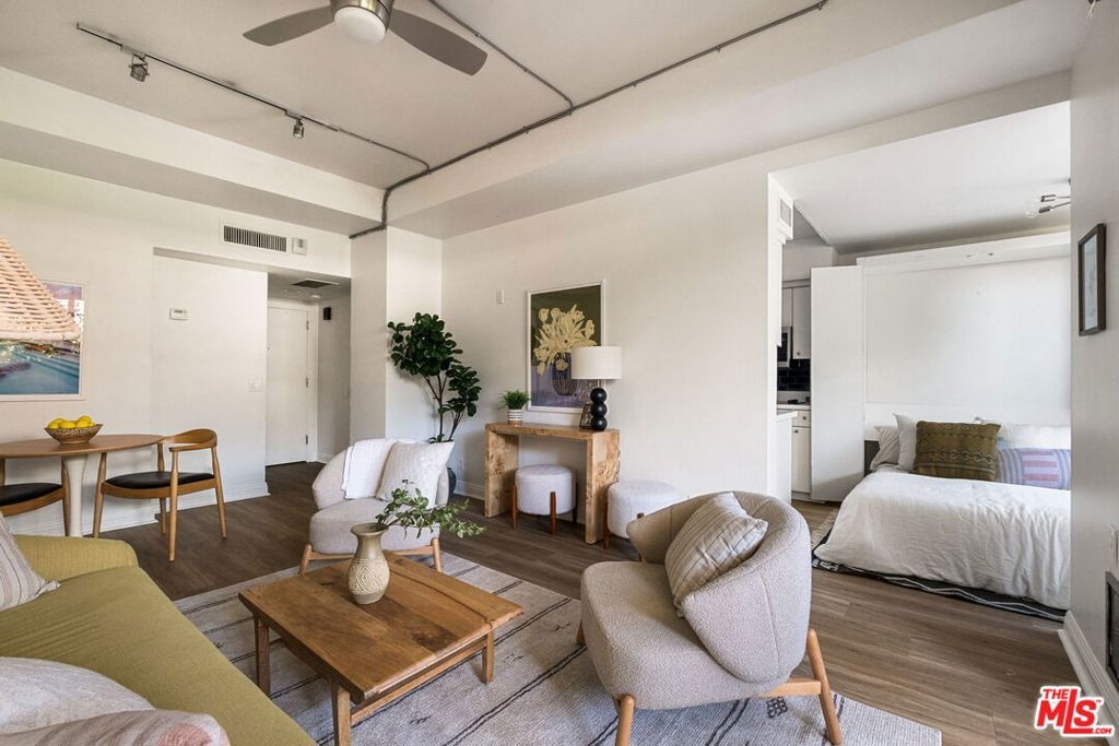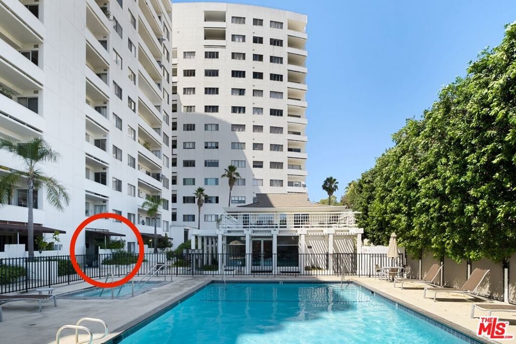 Located in the foothills just below Runyon Canyon Park, Franklin Towers is a full-service building and Unit #111 is a rare offering located directly on the building's pool deck level. Enter through the spacious lobby, past the concierge desk and then down a few steps to reach this unit. As you enter this light-filled studio unit, you'll first see the spacious living/dining room. Out through a sliding glass door is a private, gated patio leading directly to the pool and spa area. Along the left side of the unit is the renovated bathroom with stall shower, and the sleeping area with a built-in Murphy bed and a renovated galley kitchen with new appliances. Completing the home is an ideal workspace with a window looking out to the pool deck. Franklin Towers offers many amenities, including guest parking, a large pool and spa, a clubhouse with steam rooms and saunas, a yoga room, a dog run, a rooftop sundeck, a fitness center, and electric car charging stations. Enjoy the peace of mind provided by 24-hour concierge and security services.