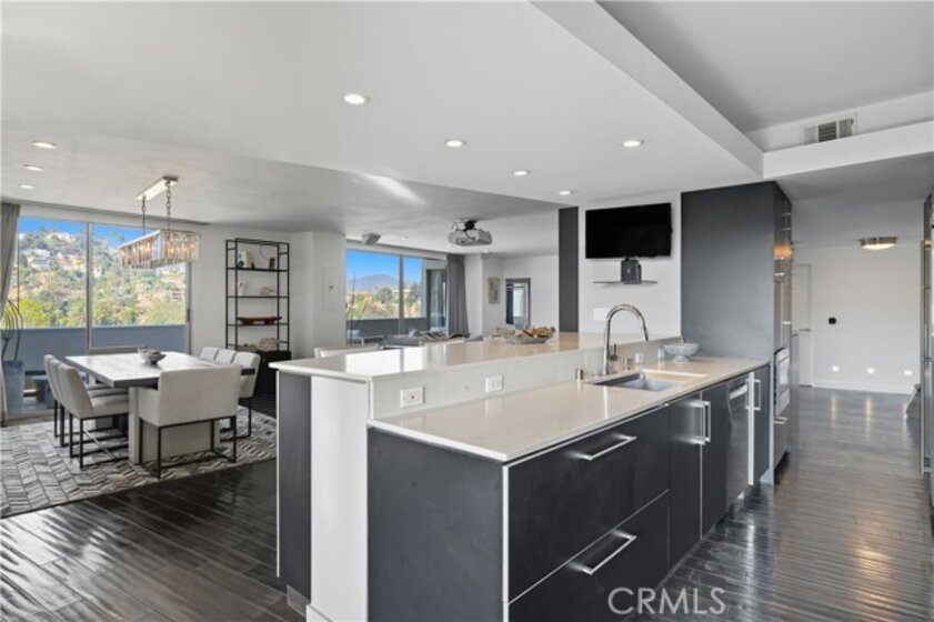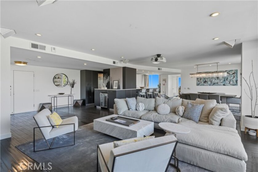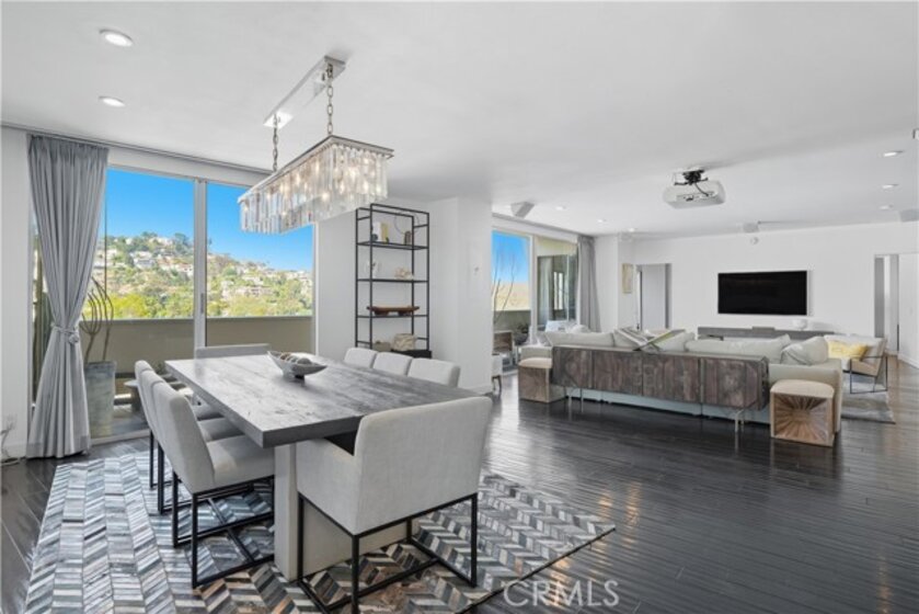 Experience penthouse living at its finest in the prestigious Franklin Towers. This rare offering features sweeping, unobstructed views that span from Century City and the Hollywood Hills to the Pacific Ocean, all framed through two expansive balconies with dramatic floor-to-ceiling glass panels. A double-door formal entry welcomes you into a light-filled open floor plan designed for both grand entertaining and everyday elegance. The living and dining areas feature integrated surround sound, a ceiling-mounted projector with retractable screen, and seamless indoor-outdoor flow; perfect for hosting in true Hollywood style. Featured in HBO’s Entourage, this residence embodies cinematic glamour. The chef’s kitchen is a statement in modern design, outfitted with sleek custom cabinetry and premium built-in appliances. Two luxurious ensuite bedrooms, each with private balcony access and panoramic views, and spa-inspired bathrooms and generous size walk-in closets. Additional highlights include a powder room, in-unit laundry, hardwood flooring throughout, and 3 assigned parking spaces. Franklin Towers is a Hollywood landmark, offers white-glove amenities including 24/7 concierge and onsite valet service, heated lap pool and spa, steam room, sauna, rooftop fitness center, clubhouse, dog run, and an expansive rooftop deck showcasing 360-degree views from cityscape to ocean. Perfectly positioned near the iconic Sunset Strip, Hollywood Bowl, Walk of Fame, and Runyon Canyon trails, this penthouse embodies the ultimate blend of luxury, lifestyle, and location.