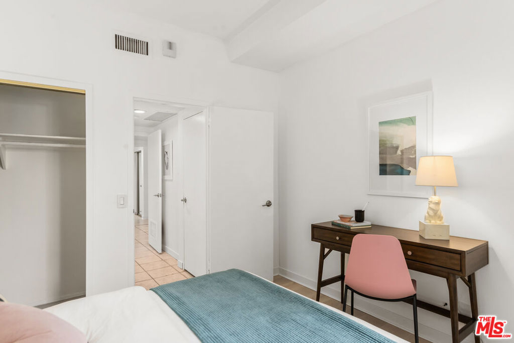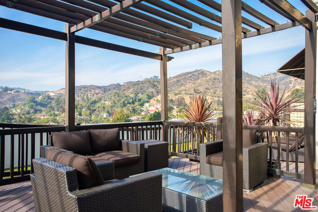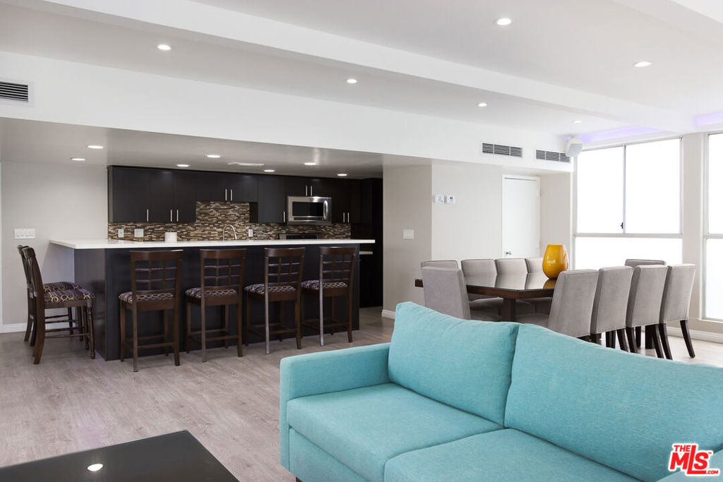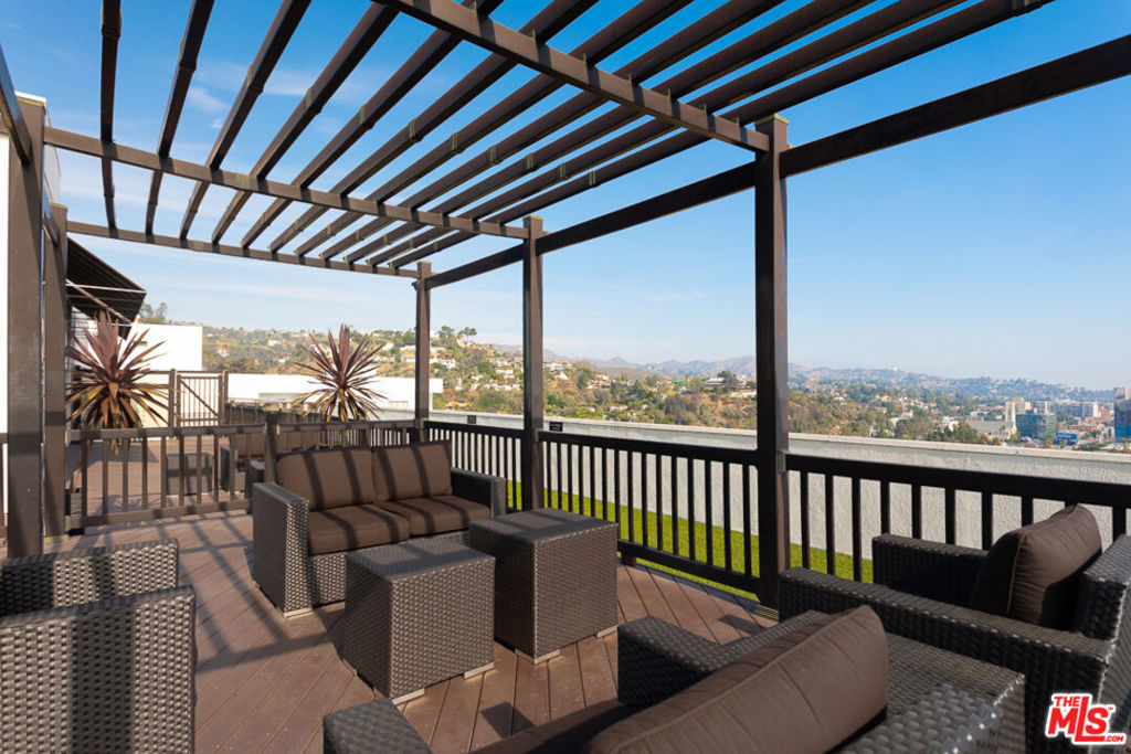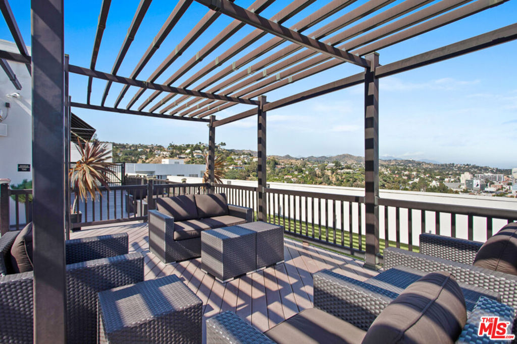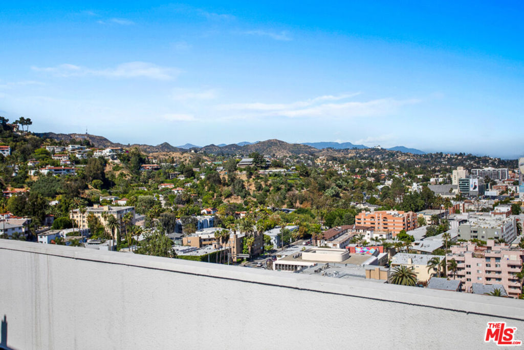 Corner condominium with desirable floor plan featuring only one common wall, hard surface floors throughout, opposite side bedroom suites, large living room with open dining area, and wrap-around balcony with floor-to-ceiling sliders and window. Eat-in kitchen w/ modern cabinetry, quartz counters, & updated stainless steel appliances. The guest bedroom suite provides a full bath & choice to create a flex work/live area perfect for stay-at-home work comfort, or roommate option with privacy. The expansive primary bedroom suite creates calm w/ dual closet space and expanded ensuite bathroom featuring marble walk-in shower with bench. Convenient In-Unit stackable laundry, newer HVAC and tandem parking with extra private storage. Franklin Towers provides a lifestyle that combines a refined lobby, valet guest parking, security, resort size pool/spa, clubhouse w/ steam rooms, dry saunas, yoga room, & full kitchen along w/ a dog run, rooftop sundeck, & gym. Area attractions include Runyon hiking, the Hollywood Walk of Fame, & the Iconic Sunset Strip.