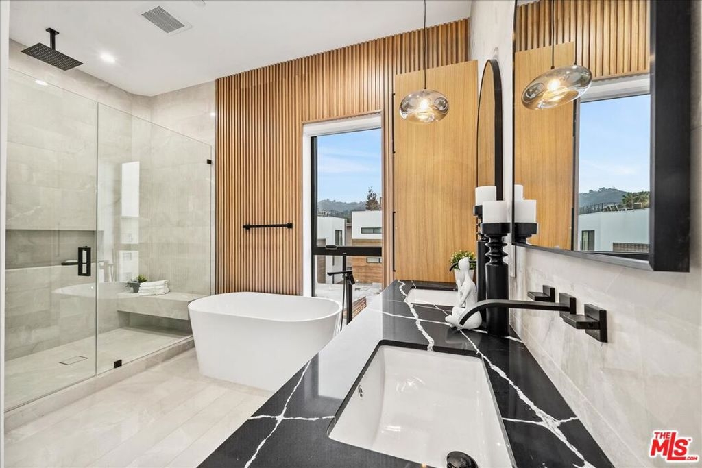 Discover a unique collection of five new gated small lot residences in the heart of West Hollywood. These homes seamlessly combine luxurious amenities, central convenience, and the serenity of a private, peaceful neighborhood. Each three-bedroom home is meticulously designed and spans four levels, featuring luminous, open floor plans. Retreat to the expansive primary suite, featuring a spa-like bathroom with a soaking tub, a glass-enclosed shower, dual vanities, and a massive walk-in closet. Interiors feature gourmet kitchens with luxury white gold appliances, designer finishes, open space to the living room with an electric fireplace, high ceilings with recessed lighting, custom flooring and millwork, and plenty of natural light, as well as outdoor balconies and terraces*A stunning private rooftop with a city view and a built-in barbecue with an outdoor kitchen, where you can savor breathtaking views of the downtown skyline, Griffith Observatory, Hollywood sign, and Hollywood Hills - a perfect setting for outdoor entertainment or peaceful relaxation. Other features include in-unit washers and dryers, built-in security system hook-ups, a sound system, and integrated fire sprinklers. Gated access and secure garage parking provide additional peace of mind. This is a unique opportunity to live in a brand-new, bespoke home just steps away from the charming storefronts, groceries, and restaurants of WeHo and Hollywood, as well as in a highly central location with easy access to the rest of Los Angeles. *Select floor plans; buyers must verify.