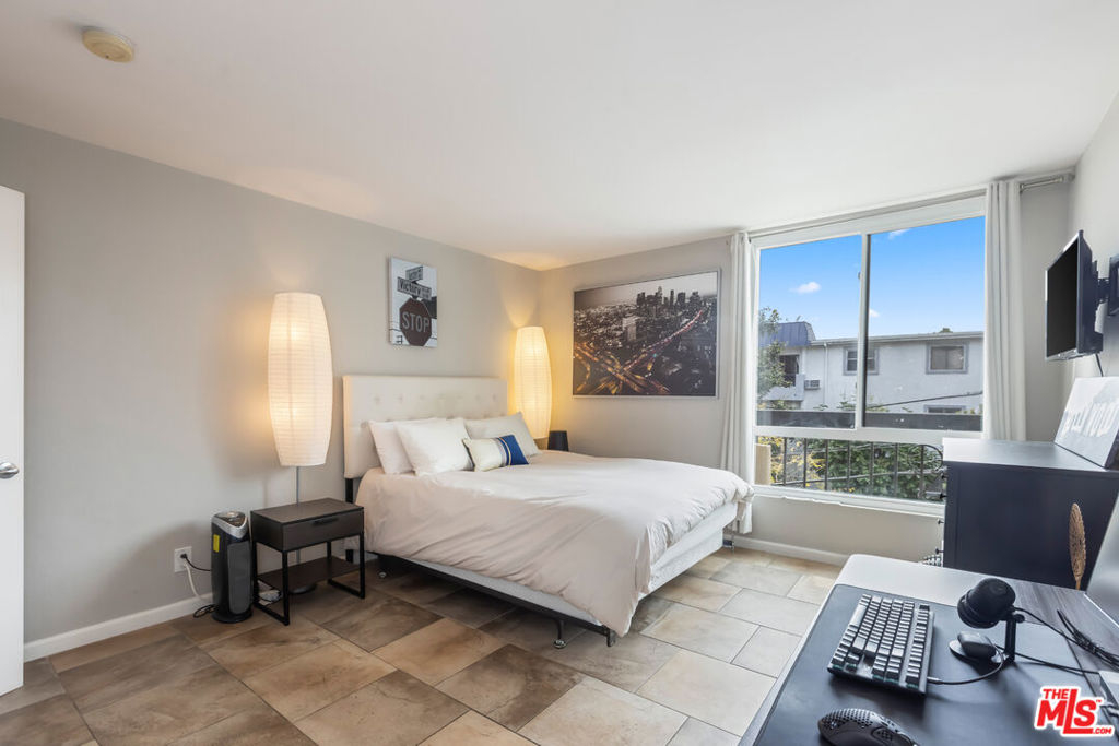 Located in a highly sought after pocket of Hollywood, this light and bright move-in ready condo offers 2 bedrooms, 2 bathrooms, and nearly 1,100 sq ft of living space with tasteful finishes throughout. Charming & well kept, the functional floor plan features a spacious, open living area highlighted by a cozy fireplace and floor-to-ceiling windows that lead to a balcony showcasing views of the Hollywood Hills. Perfect for entertaining, the kitchen opens up to the living area and is complete with stainless steel appliances, granite countertops, and room for additional bar top seating. Offering optimal privacy, the home has two separate bedroom suites on opposite ends, both with walk-in closets and en-suite bathrooms. Additional features include in-unit laundry, two gated parking spots, and guest parking. Community amenities include a large pool, sundeck, spa, and fitness center. Ideally located, the Hollywood Regis is situated near the border of Hollywood and West Hollywood, just minutes from Runyon canyon, Wattles Mansion, Magic Castle, and the best entertainment & dining the area has to offer.