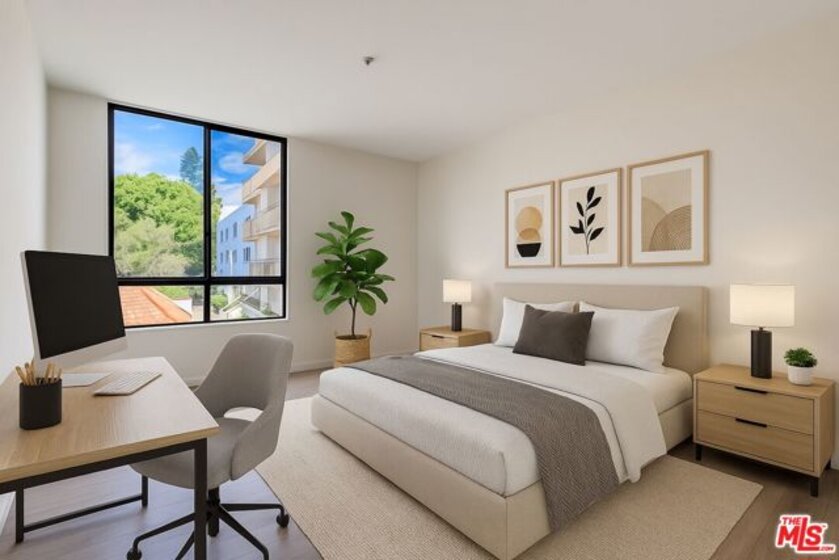 Just moments from Runyon Canyon, this light-filled 2-bedroom, 2-bath contemporary condo offers sweeping Hollywood Hills and skyline views in a prime Hollywood location. Large windows create an open, airy feel, while a spacious private balcony sets the stage for morning coffee, sunset views, and evening city lights. The modern kitchen features stainless steel appliances, a gas cooktop, and sleek finishes. Freshly painted with ceramic tile flooring throughout, the thoughtfully designed layout includes two generous primary-suite bedrooms each with a walk-in closet and upgraded en-suite bath. Ideal for shared living, guests, or a work-from-home lifestyle. A gas fireplace provides warmth and subtle separation between the living space and bedrooms. Located one block north of Sunset Boulevard, enjoy easy access to Runyon Canyon trails, top restaurants, and vibrant nightlife, all while maintaining a sense of privacy and calm. Additional amenities include in-unit laundry, central air, two secured garage parking spaces plus guest parking, nighttime guard service, and a resort-style building with sparkling heated pool, cabana, hot tub, and fitness center. A move-in-ready opportunity near one of LA's most iconic destinations.