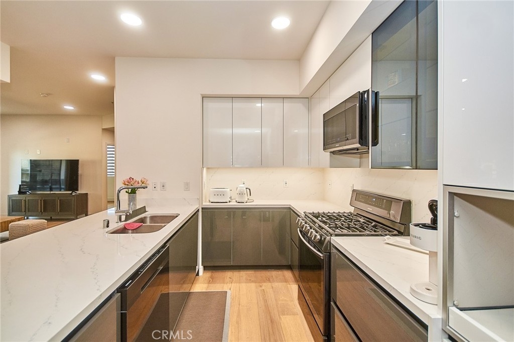 This particular unit is facing on the corner of South and East side on the 3rd floor. It is always bright and airy and this Home offers comfort and luxurious LA living style within prime Residential area near Hancock Park/the heart of K-town and easy access to Beverly Hills, West Hollywood, and Downtown LA, this home also offers comfort, security, and luxurious living style, Featured with 3 spacious bedrooms and 2 full bathrooms, Outfitted with high-end appliances in Kitchen, including cabinetry doors and drawers have exceptional quality came from K-craftmanship, the Mater suit has own shower booth in addition to a bathtub in its bathroom, overlooking broad view of the neighborhood from balconies, secured entry through the elevator from the parking lot, rooftop BBQ resting area, secured with surveillance cameras and entries throughout. Most of all, there are more than enough parking spaces (3 assigned parking space) enable to set up an EV-charging station for this unit in addition to the guest parking lots.