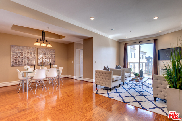 Best value in the area! Top floor, freshly painted, newer built and gorgeously naturally-lit residence. This invigorated condo accompanied with an open floor plan, high capacity central A/C & heat, in unit washer/dryer, a patio, gas fireplace, and features hardwood flooring and elevated ceilings. Extra storage in the garage. The kitchen is equipped with stainless steel appliances including fridge, granite countertops, and custom cabinetry. Extra large bedrooms are spacious, accommodating most all bedroom furniture, with recessed lighting throughout. Earthquake insurance included in the low HOA dues. Near Larchmont Village and Melrose shops/restaurants.