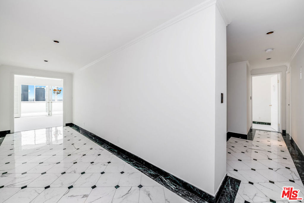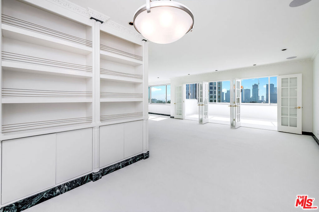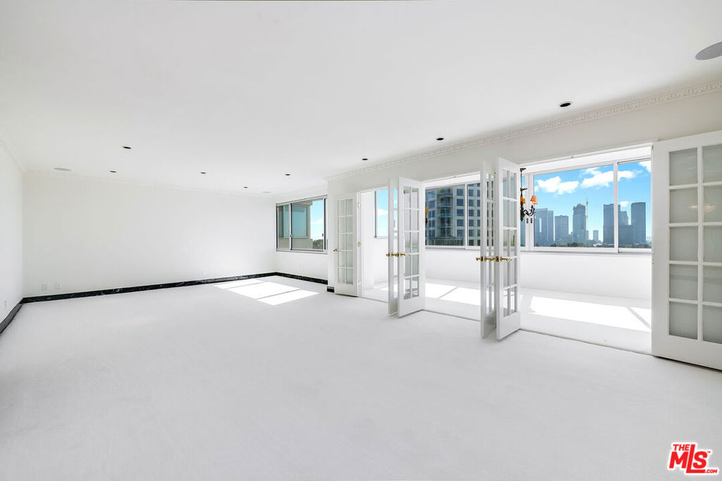 This fabulous remodeled two-bedroom, two-and-a-half-bathroom residence, with beautiful South-facing panoramic city-to-ocean views, is situated in the full-service Wilshire Comstock building and offers both comfort and sophistication. Originally a three-bedroom unit, it has been thoughtfully reconfigured to provide a spacious primary suite, a guest bedroom, a powder/guest bathroom, and a dressing room/closet (formerly the third bedroom). Every detail has been carefully considered, from the sleek Fleetwood windows throughout to the cutting-edge Lutron electrical system, featuring both wall controls and remotes for ultimate convenience. A state-of-the-art sound system is installed in every room, enhancing the overall ambiance. The unit boasts stunning marble hallways, while custom wood floors grace the kitchen and laundry areas. Step outside into an enlarged, glass-enclosed patio/sunroom, accessible through three sets of custom French doors. This tranquil space offers breathtaking views of the city and ocean, perfect for relaxation or entertaining. The luxurious primary bath has been enlarged to feature a spa tub, a separate marble shower, double sinks, and Lalique faucets throughout. The second full bath features marble finishes and a large seated steam shower. The kitchen is equipped with top-tier appliances, including a Miele built-in coffee maker, beautiful marble counter-tops and adjoining laundry room with a Miele stacked washer and dryer. A separate electrical/control closet adds to the practicality of the unit, ensuring everything is organized and easily accessible. The building itself is equally impressive, offering beautifully landscaped grounds, an opulent driveway, and a refined lobby. Residents enjoy 24/7 valet service, concierge, and security, along with on-site management. Amenities include a pool, spa, gym, sauna, and a recreation room with a kitchen. Situated in the prestigious Wilshire Comstock building, this residence offers an unbeatable location, just moments from Beverly Hills, the Century City Mall, Holmby Park, Westwood Village, UCLA, and easy access to the 405 freeway. This is refined living at its finest.