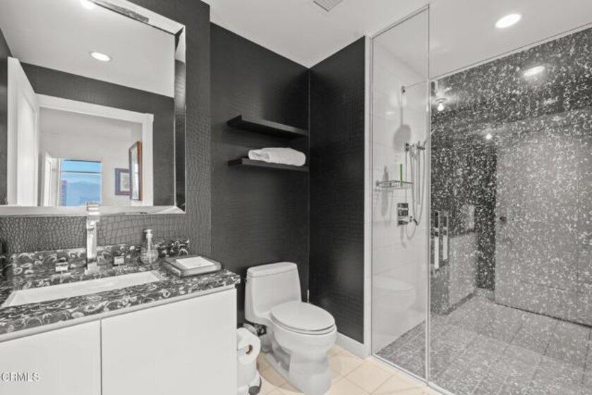 A statement in both scale and design, Residence 36J is a 36th floor corner home at The Ritz Carlton Residences at L.A. LIVE, offering sweeping north and west skyline views and a truly bespoke living experience. Spanning approximately 2,110 square feet, this 2 bedroom plus den, 3 bath residence is framed by floor-to-ceiling windows that capture Downtown Los Angeles in cinematic scale, filling every room with natural light from sunrise through evening city lights.What truly distinguishes this residence is the presence of a seasoned and discerning design eye throughout, resulting in a home where every detail feels intentional. A dramatic black marble entry creates a striking sense of arrival, flowing into custom black wood flooring that runs throughout the home. High ceilings enhance volume and light, while custom recessed lighting has been thoughtfully designed to define living zones and create layered ambiance. This lighting is paired with custom wall switches in the bedrooms and hallways, allowing each space to transition effortlessly from day to night. Automated sheer and blackout shades are fully integrated into the system, offering refined, intuitive control over light and privacy throughout the residence.The open-concept living and dining areas balance refinement and comfort, anchored by clean architectural lines and a sleek kitchen equipped with premium Gaggenau appliances, ideal for both everyday living and entertaining. A formal entry adds structure and elegance, while generous storage is seamlessly integrated throughout. The primary suite serves as a serene retreat with a spa inspired bath and ample storage. The flexible second bedroom features custom fabric wrapped walls, adding warmth and texture. A separate den, also enhanced with fabric wall detailing and a custom floor-to-ceiling built-in cabinet, offers a versatile setting for a home office, library, or media room. Three luxurious bathrooms, two featuring distinctive crocodile textured wall treatments, complete the thoughtfully designed interior.Life at The Ritz Carlton Residences is defined by ease, discretion, and elevated service. Residents enjoy 24-hour valet and concierge, rooftop pool with private cabanas, fitness center, screening room, owner's lounge, and seamless access to hotel services including housekeeping, in-room dining, and spa offerings. Ownership also includes access to Onvia, the Ritz Carlton Owner Recognition Program, offering elevated concierge services.