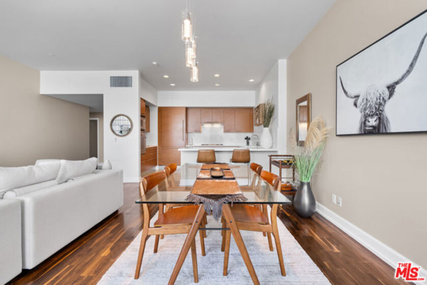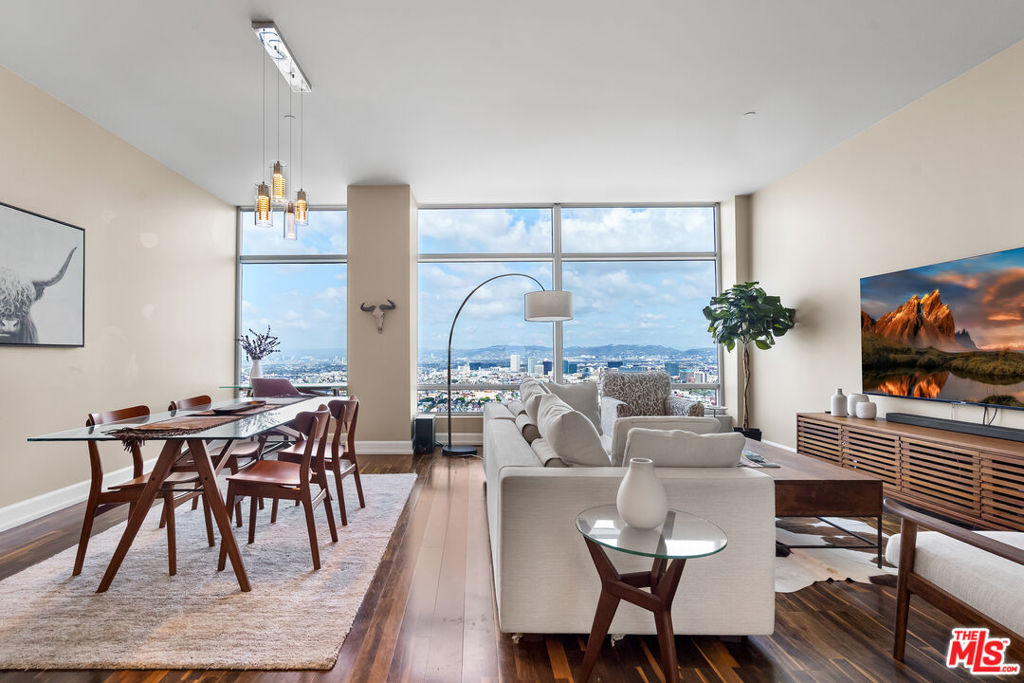 Perched on the 40th floor of the prestigious Ritz-Carlton Residences, this exquisite condominium offers an unparalleled blend of sophistication, service, and stunning panoramic views. From the moment you step inside, you're captivated by breathtaking vistas that stretch from the majestic mountain ranges to the shimmering Pacific Ocean, all framed by the city's dynamic skyline. The open-concept kitchen is a chef's dream, featuring an ample sized island, sleek Snaidero Italian cabinetry and top-of-the-line Gaggenau appliances. The living area is equally impressive, boasting Danish hardwood floors, near floor-to-ceiling windows, and soaring 10-foot ceilings that showcase iconic sights such as the Hollywood Sign and Griffith Observatory. Both bedrooms are spacious retreats, each with a luxurious ensuite bathroom. The primary suite offers a spa-like oasis, complete with a soaking tub, floor-to-ceiling tile, and a unique window into the bedroom to maximize natural light and enhance the views. Storage is abundant, with a walk-in closet in the primary suite and a double-door closet in the entryway area. Additional highlights include motorized window shades, custom light fixtures, a powder room with laundry, and a versatile den perfect for a home office or cozy lounge space. Beyond your private sanctuary, indulge in the legendary white-glove service of The Ritz-Carlton. Enjoy in-residence dining, housekeeping services, and exclusive owner perks, such as VIP event access and hotel discounts worldwide. Take the elevator down to the Ritz-Carlton Spa for a rejuvenating massage or steam session, or explore the renowned on-site dining and entertainment offerings just steps away. Whether it's courtside seats at a Lakers game, a Kings hockey match, or a headlining concert, the city's best experiences are at your doorstep. This coveted residence includes two valet parking spaces and a storage unit. Experience the perfect blend of luxury, convenience, and world-class services. Schedule your private tour today.