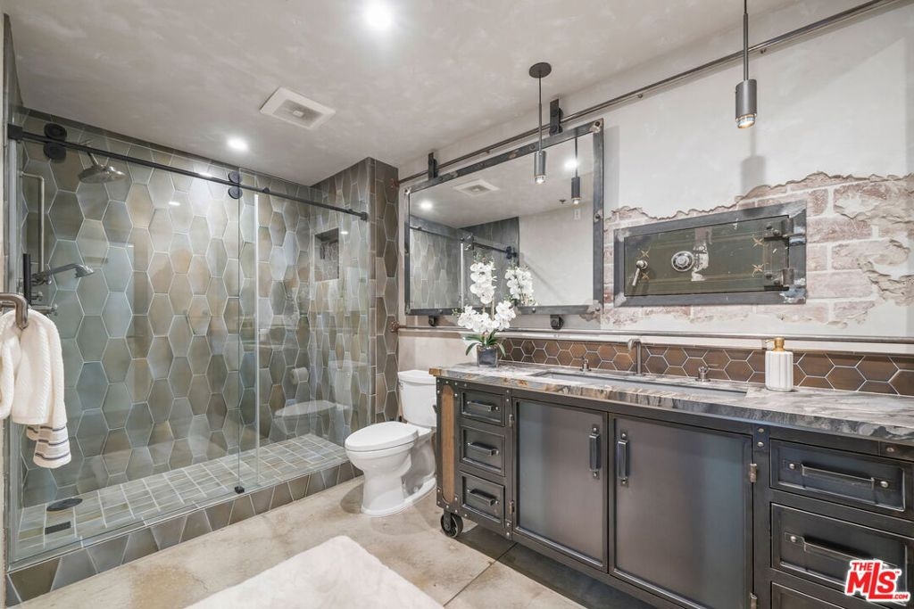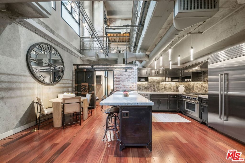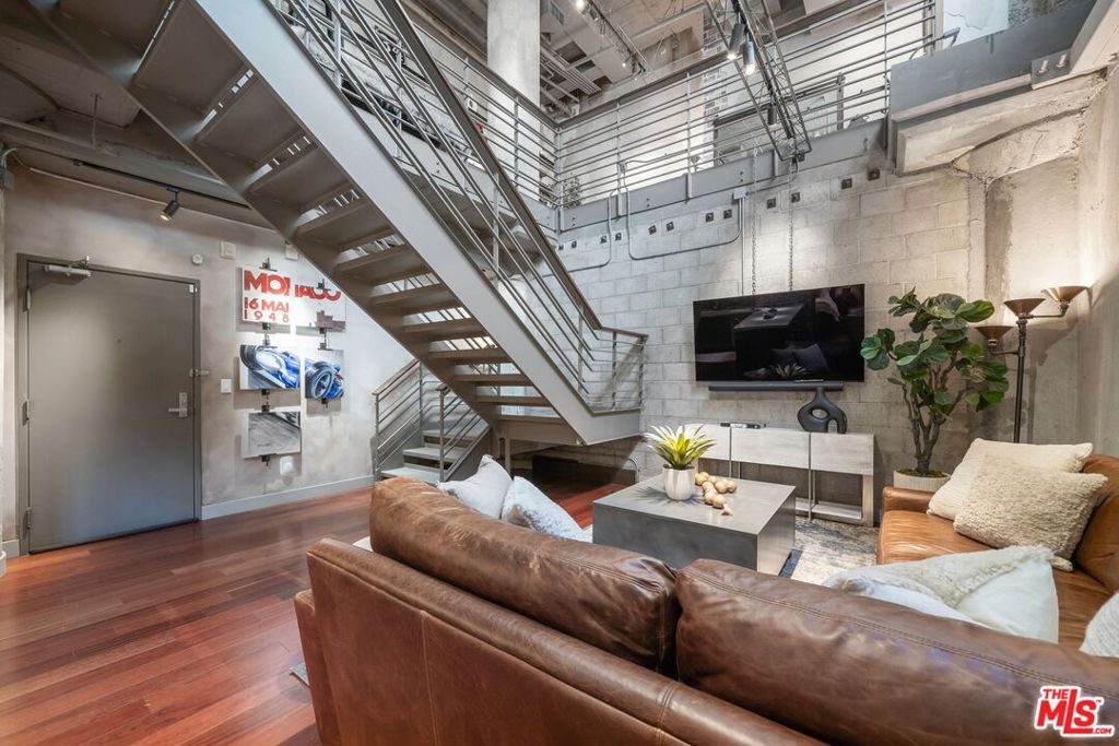 A rare industrial-style live/work loft in the heart of South Park, this striking residence offers flexible space with direct street access on Grand Avenueperfect for modern urban living or a sophisticated work-from-home setup. Soaring ceiling heights, dramatic industrial columns, exposed brick, and an open atrium overlooking the living area below create a truly one-of-a-kind architectural statement.Originally acquired as raw space, the home was thoughtfully transformed with rich custom-laid wood floors, polished concrete, sealed exposed brick, industrial girders with gallery lighting, diamond-plate steel stair treads, and custom banister details. The enclosed lower-level primary bedroom features custom doors and a skylight panel, while updated systems and laundry in unit add everyday convenience to the loft's bold design. The unit includes assigned parking space and access to resort-style amenities located next door at Aven: an outdoor pool deck, indoor lounges, fully equipped fitness center, beach volleyball and basketball courts, BBQ grills, cabanas, and more extending your living space beyond your front door.Ideally located in the vibrant South Park neighborhood, enjoy effortless access to LA Live, Crypto.com Arena, the Los Angeles Convention Center, Whole Foods, FIDM, Metro access, top-tier dining, coffee shops, entertainment venues, and Regal Cinemas.This is elevated downtown living where luxury, flexibility, and lifestyle converge.
